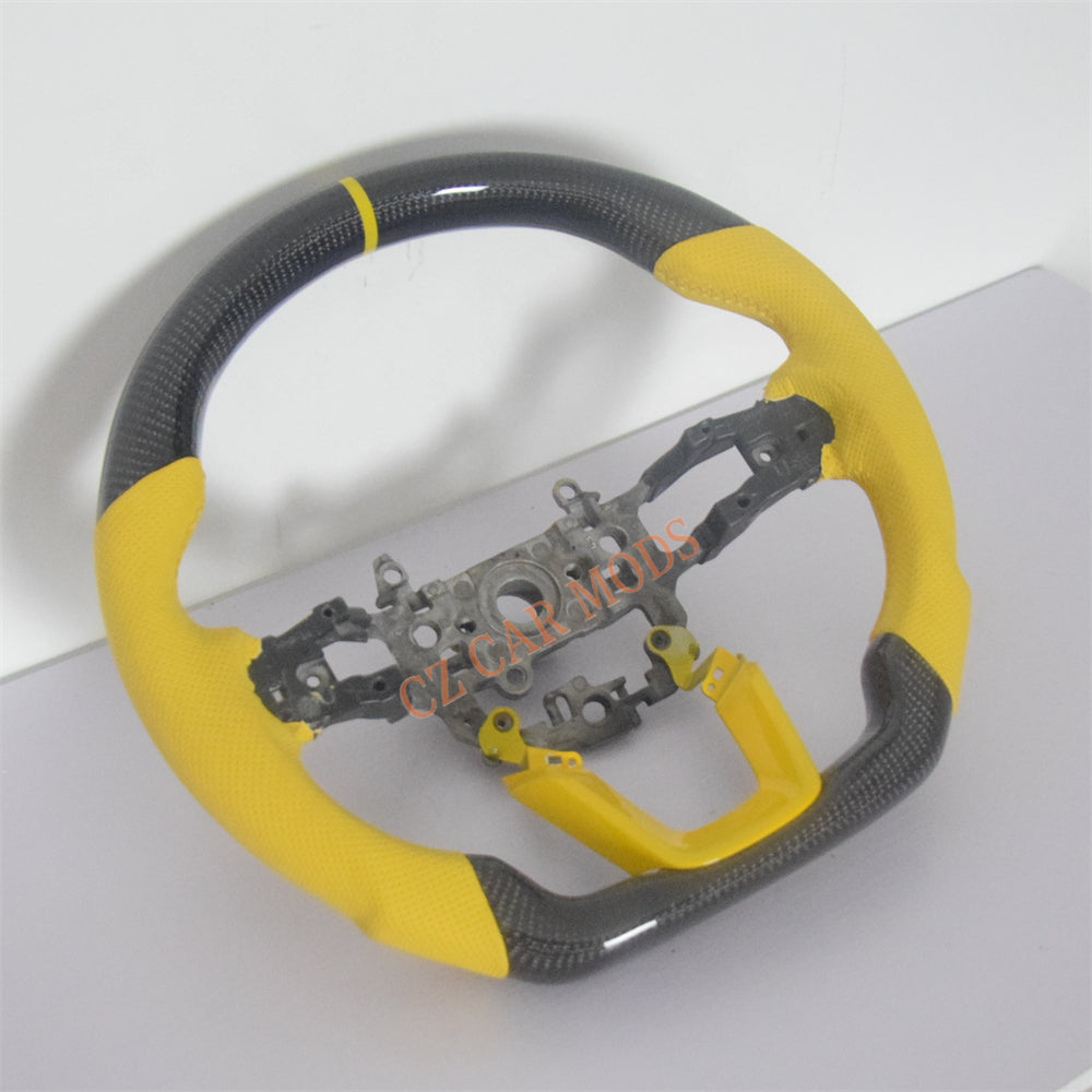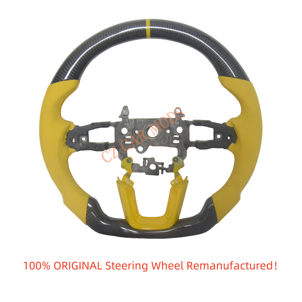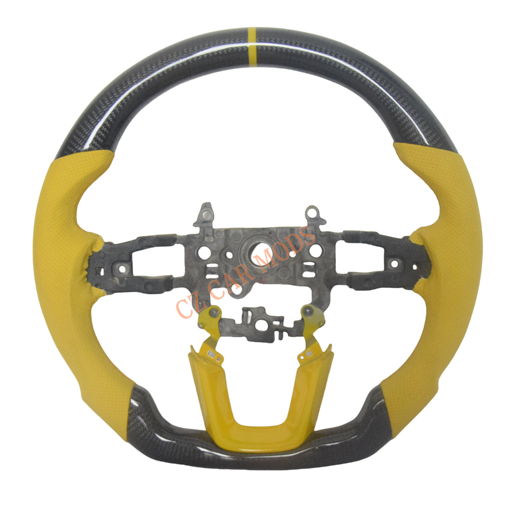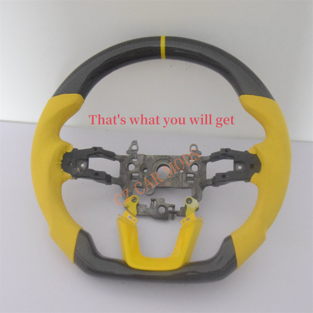 Customized Yellow Leather Real Carbon Fiber Steering Wheel Auto Accessory Fit For Honda Civic 11th GEN 2022 2023 2024 Remanufactured
