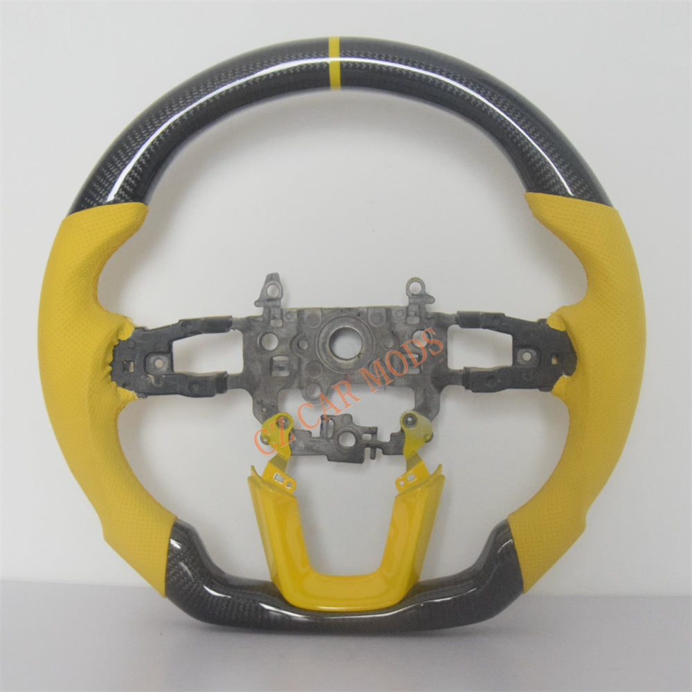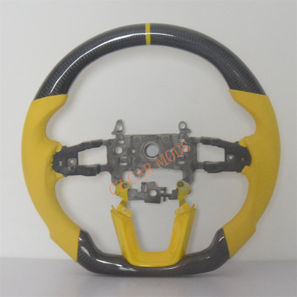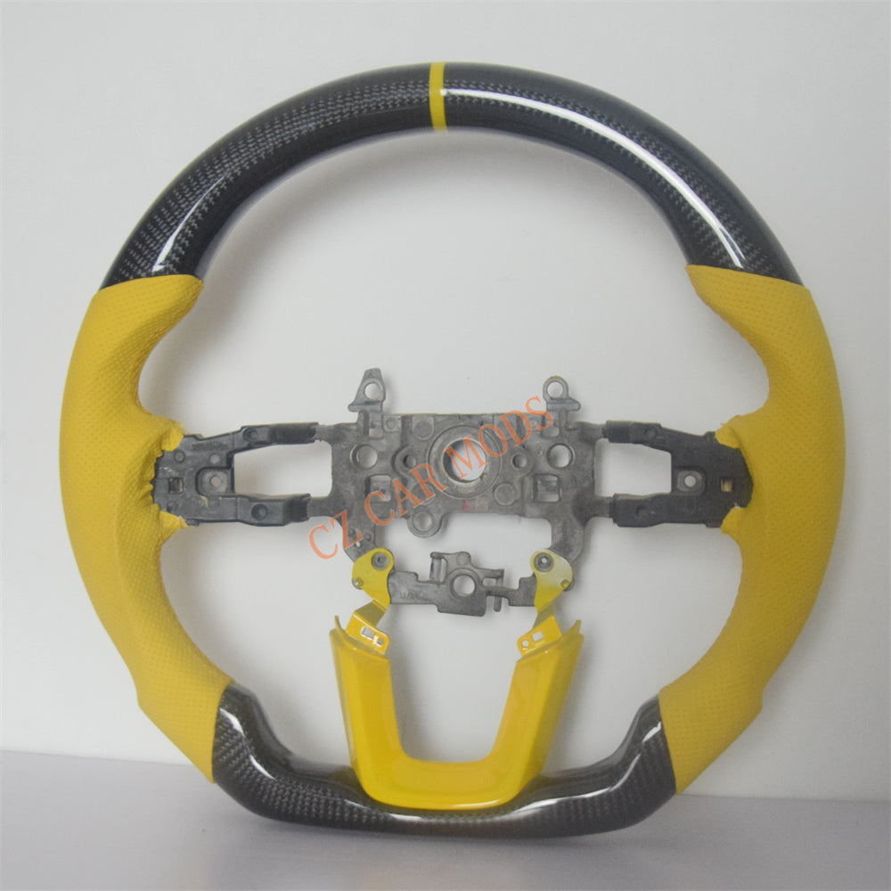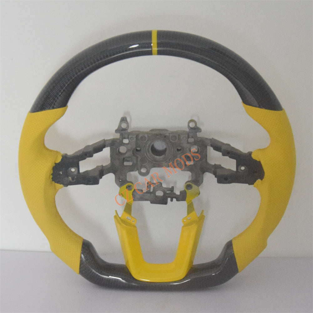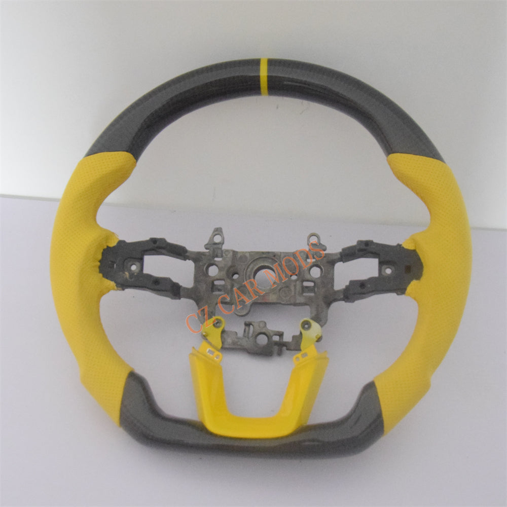 Customized Yellow Leather Real Carbon Fiber Steering Wheel Auto Accessory Fit For Honda Civic 11th GEN 2022 2023 2024 Remanufactured