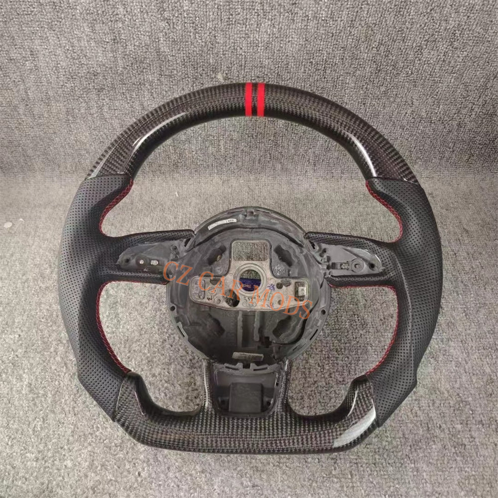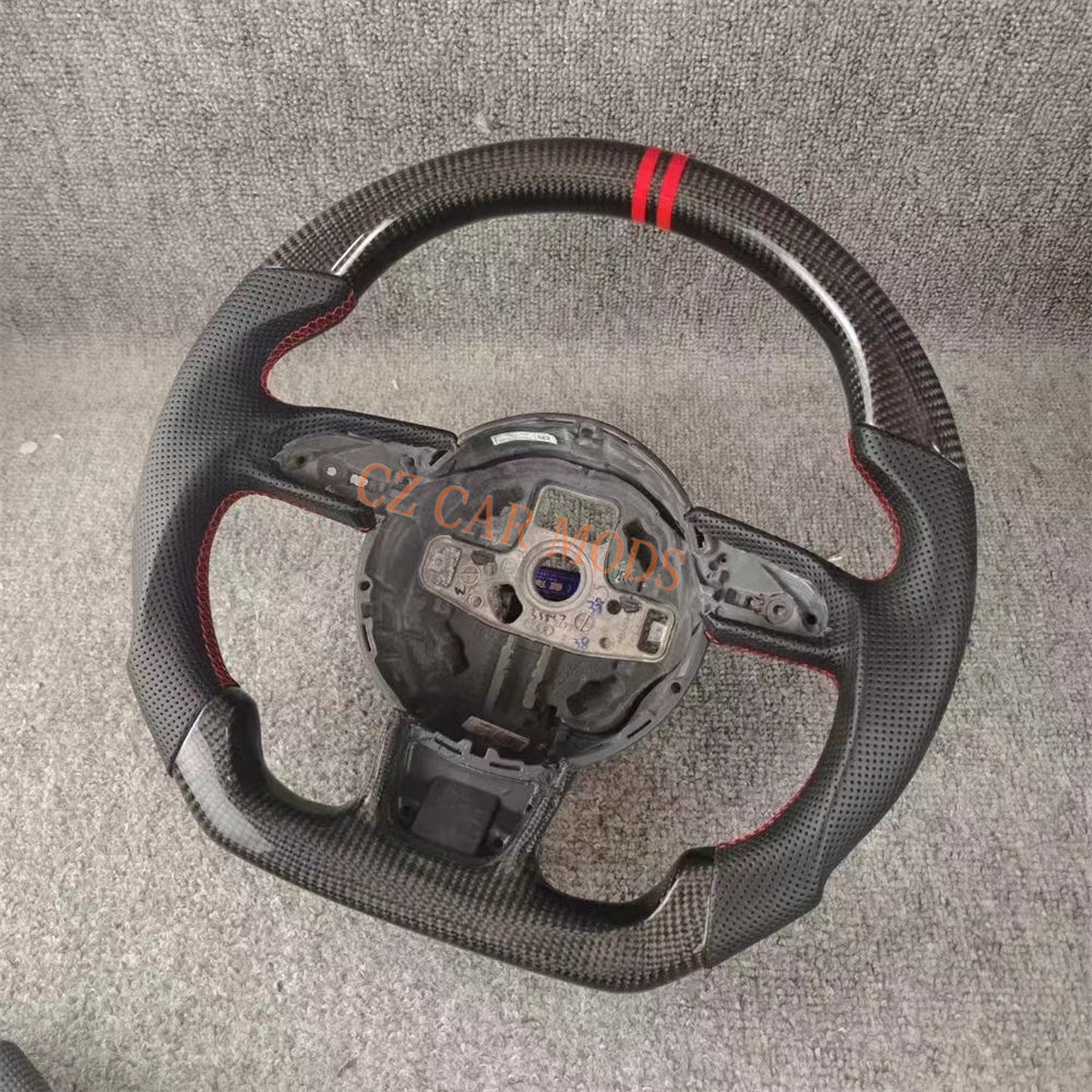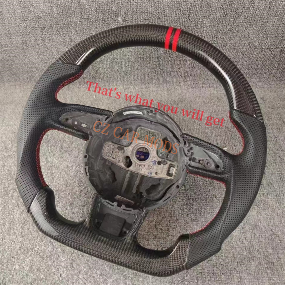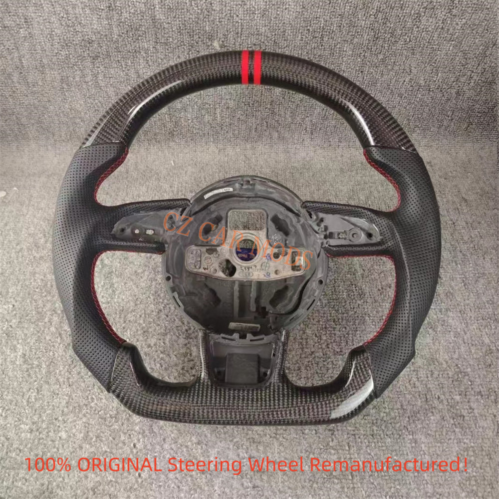 Customized Remanufactured Perforated Leather Carbon Fiber Steering Wheel Auto Accessory Red Center Strip Fit For Audi A4 RS3 2012-2016 RS4 2013-2018 RS5 2012-2016 RS6 2013-2018 RS7 2012-2016 RSQ3 2012-2016 S3 2016-2021 S4 2012-2015