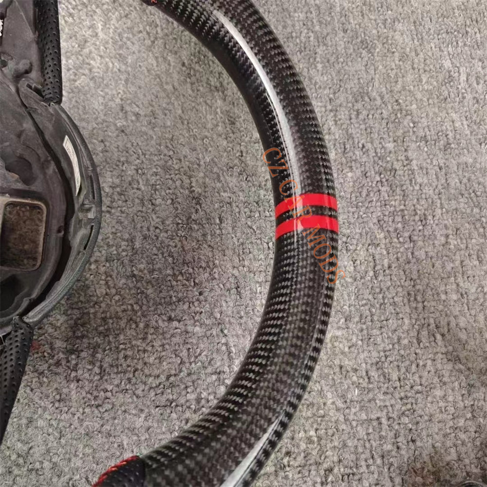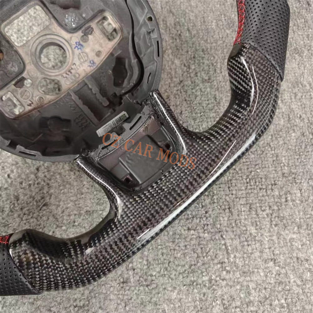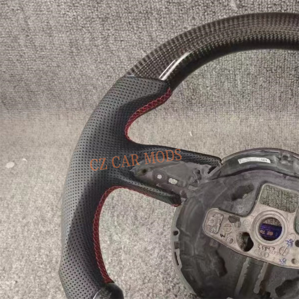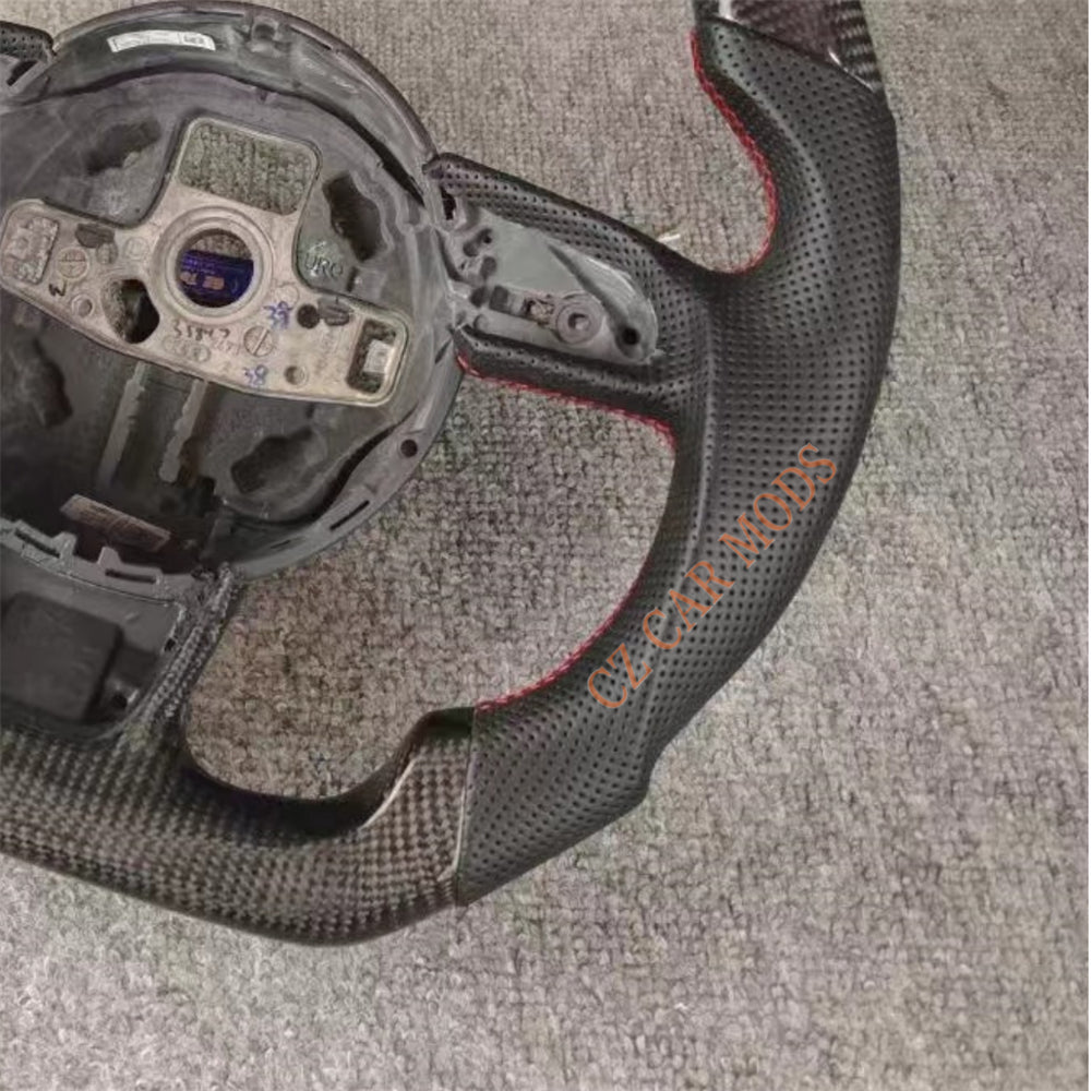 Customized Remanufactured Perforated Leather Carbon Fiber Steering Wheel Auto Accessory Red Center Strip Fit For Audi A4 RS3 2012-2016 RS4 2013-2018 RS5 2012-2016 RS6 2013-2018 RS7 2012-2016 RSQ3 2012-2016 S3 2016-2021 S4 2012-2015