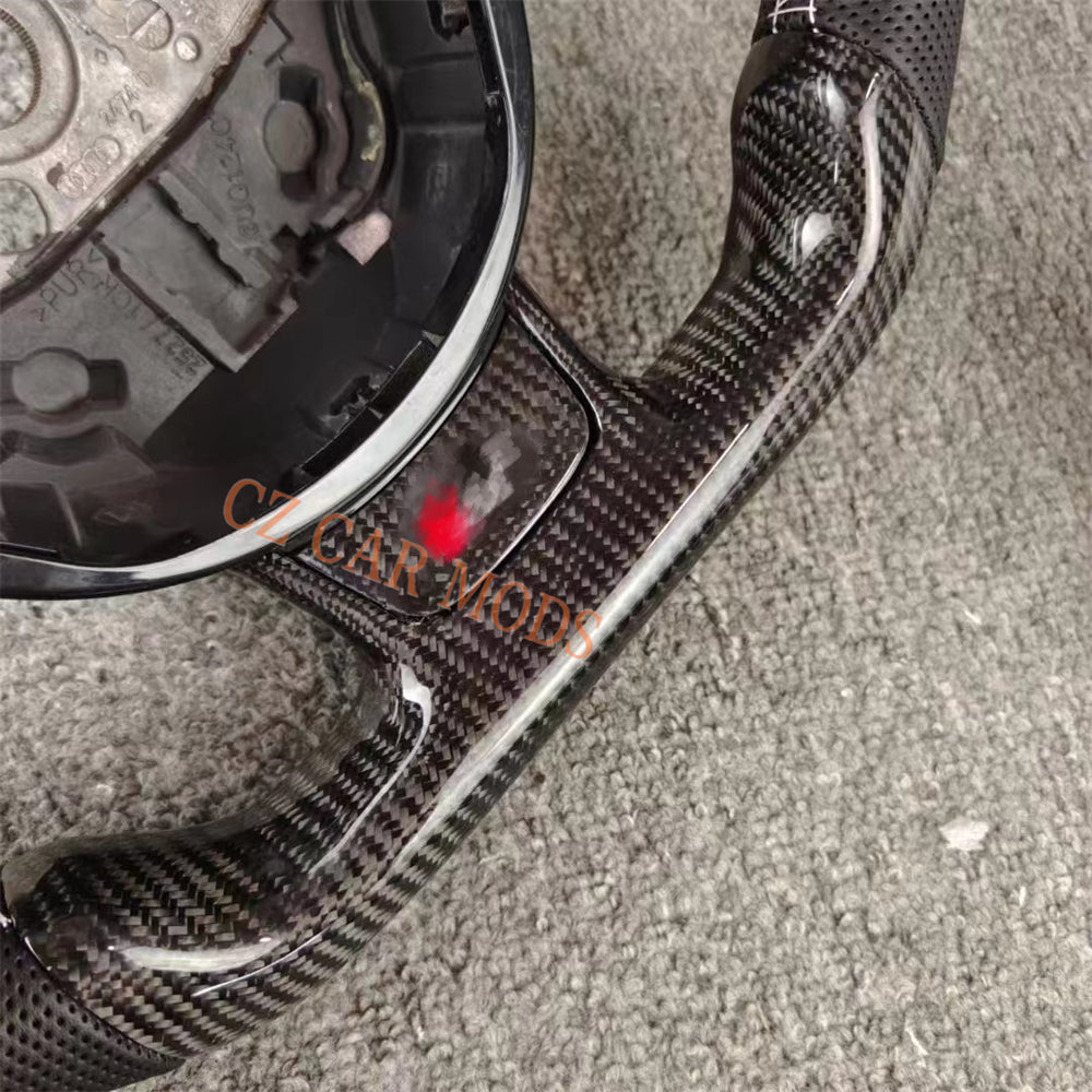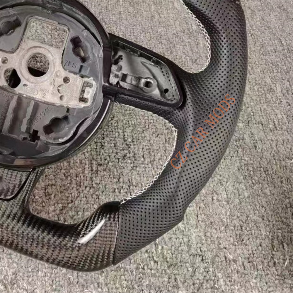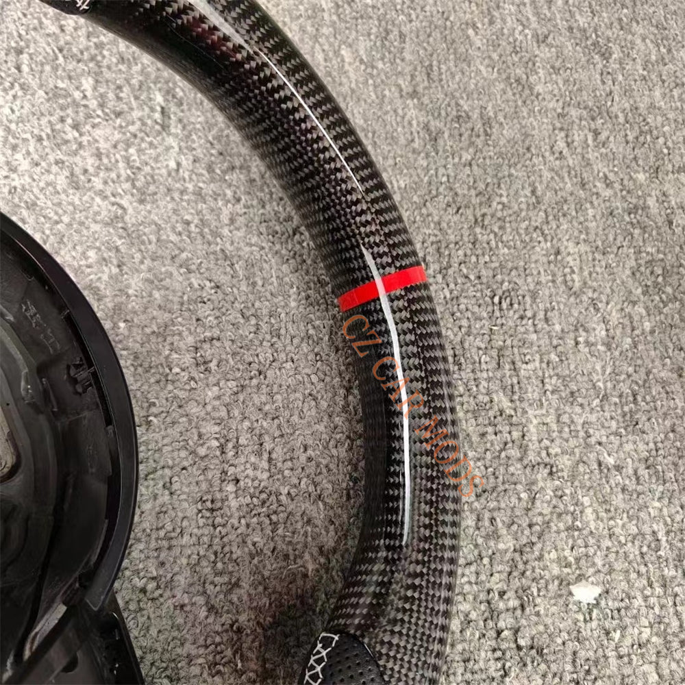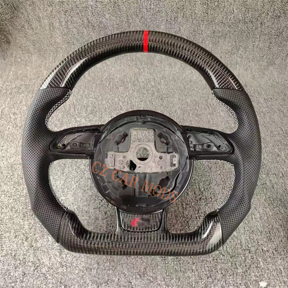 Custom Remanufactured Perforated Leather Real Carbon Fiber Steering Wheel Auto Accessory Red Center Strip Fit For Audi A4 RS3 2012-2016 RS4 2013-2018 RS5 2012-2016 RS6 2013-2018 RS7 2012-2016 RSQ3 2012-2016 S3 2016-2021 S4 2012-2015