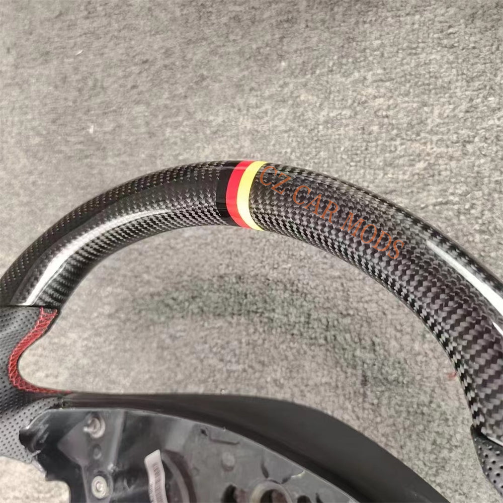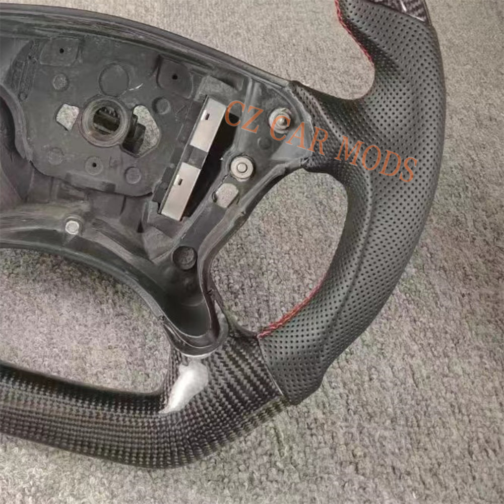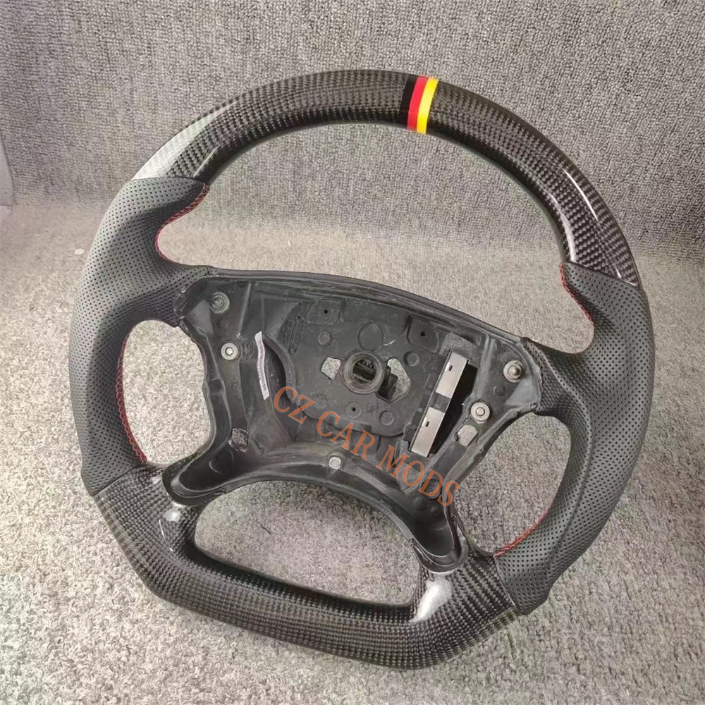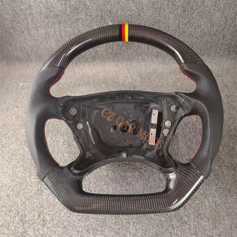 Custom Perforated Leather Real Carbon Fiber Steering Wheel Auto Accessory Tricolor Center Strip Fit For BENZ E 2004 2005 2006 2007 2008 Remanufactured