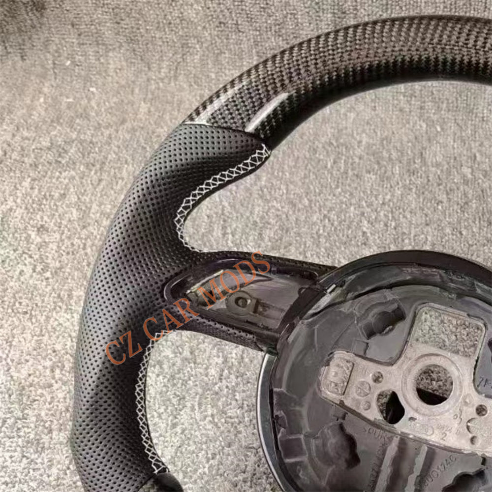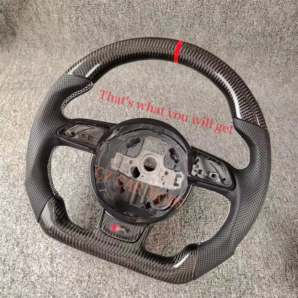 Custom Remanufactured Perforated Leather Carbon Fiber Steering Wheel Auto Accessory Red Center Strip For Audi A4 S3 2016 2017 2018 2019 2020 2021