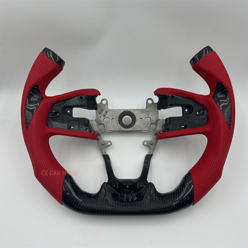 Customized Black Carbon Fiber Red Perforated Leather Steering Wheel For Honda civic 2016 2017 2018 2019 2020 2021