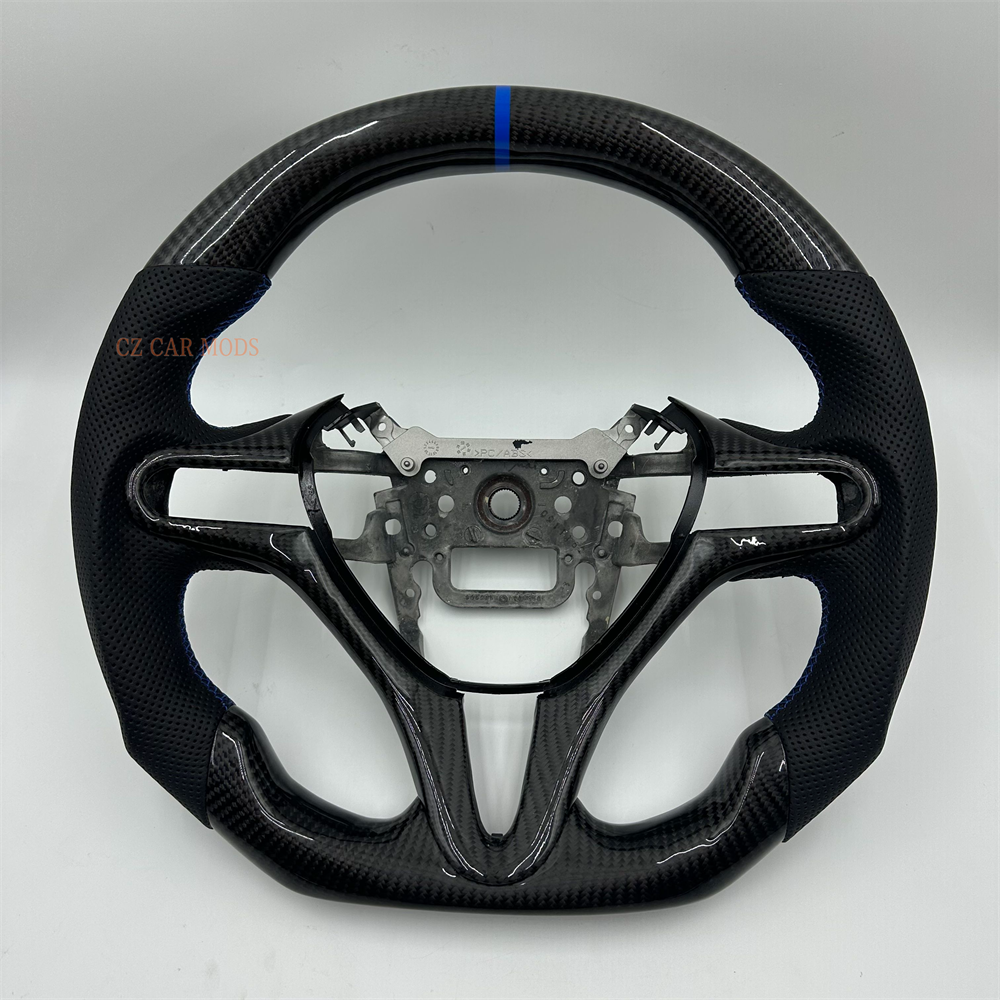 Customized black Carbon Fiber Perforated blue Strip Steering Wheel For Honda Civic 2006 2007 2008 2009 2010 2011