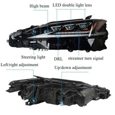 1 pair triple led Headlight fits 2019 2020 2021 2022 LEXUS ES 300h 350 car headlight replacement from single eye led to triple beam led, PLUG AND PLAY.